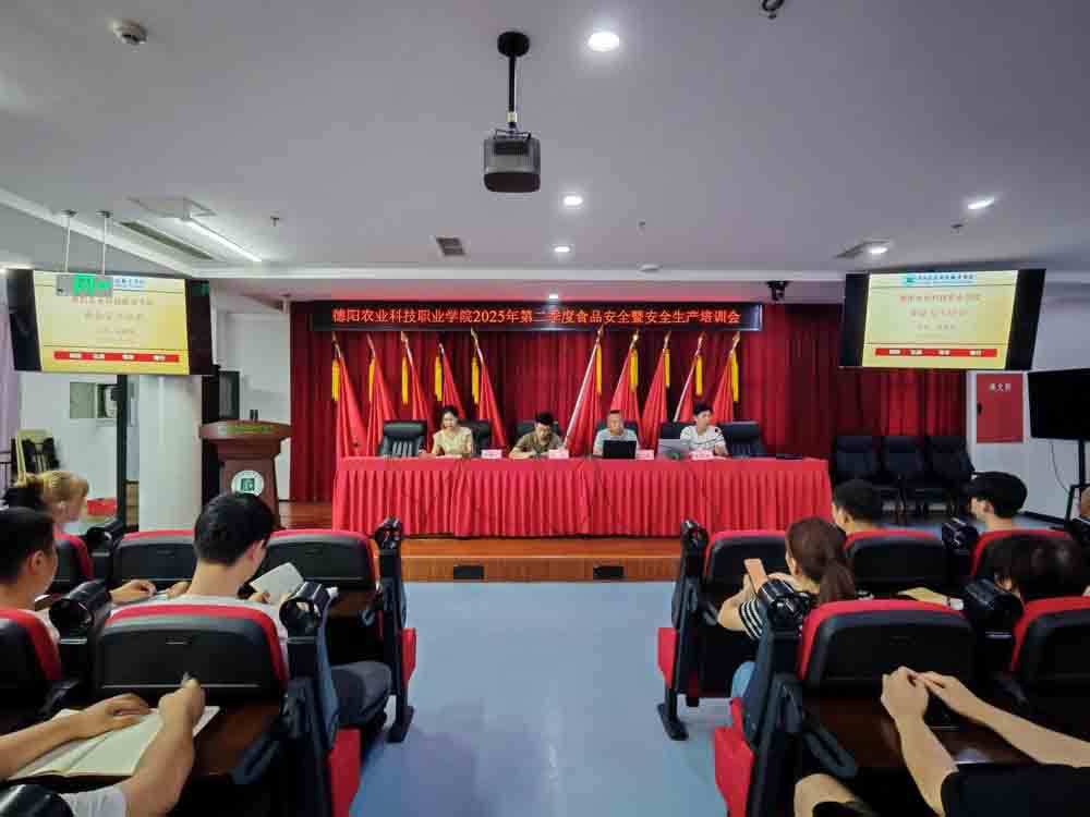 为进一步加强校园食品安全和食堂安全管理,规范餐饮服务操作流程,提升从业人员消防安全意识和应急处置能力,保障广大师生饮食安全,2025年6月11日下午,德阳农业科技职业学院后勤管理处、安全保卫处在图书馆301会议室联合召开了2025年第二季度食品安全暨安全生产培训会。学校商铺、食堂从业人员参加了此次培训。